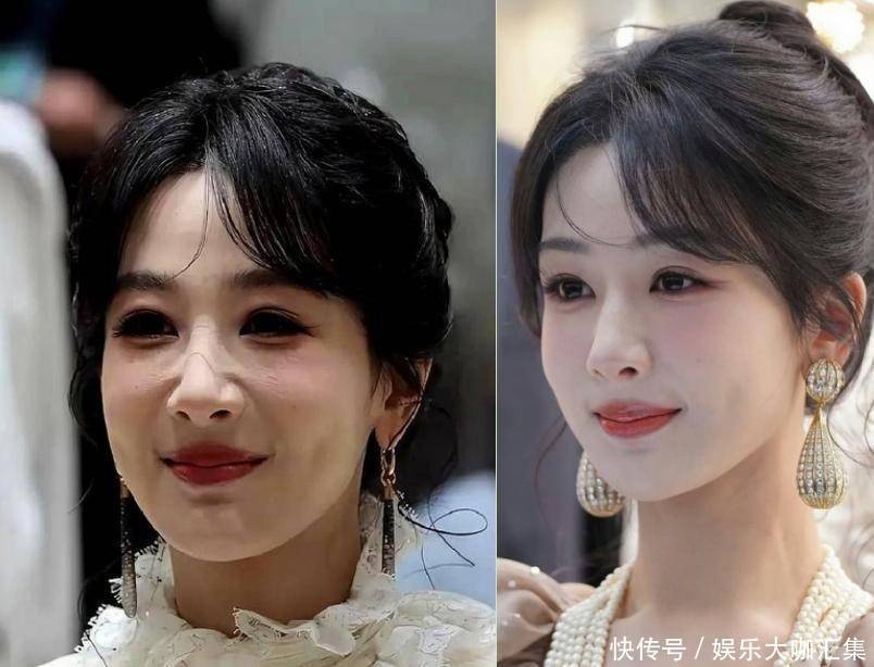 与好友刘涛同框时,也被对方明亮的大眼和立体五官压过气场。
