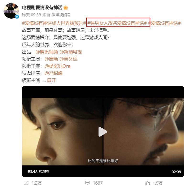 从传出的消息上看,《独身女人》即将与观众见面,但让大家没想到的是,这部剧竟突然官宣改名字,然后“独身女人改名字”话题登上热搜,万万没想到,这部剧竟将名字改为《爱情没有神话》。